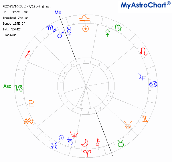 ただし、月と拮抗する太陽☉は9ハウスの天秤座♎。