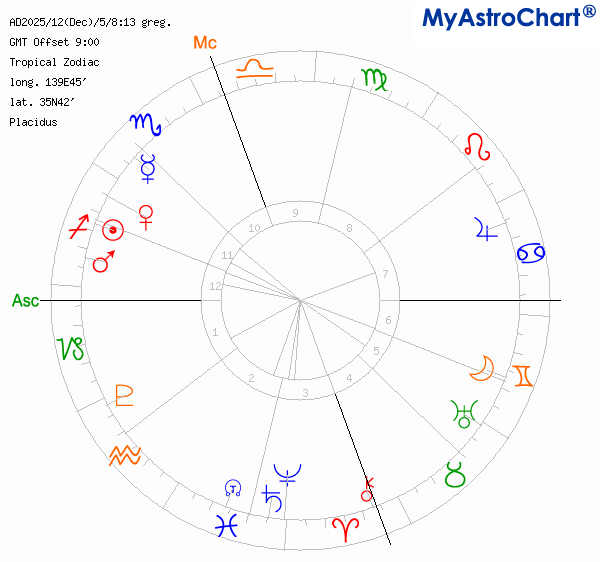 月と拮抗する太陽☉は、射手座♐で12ハウスに。
