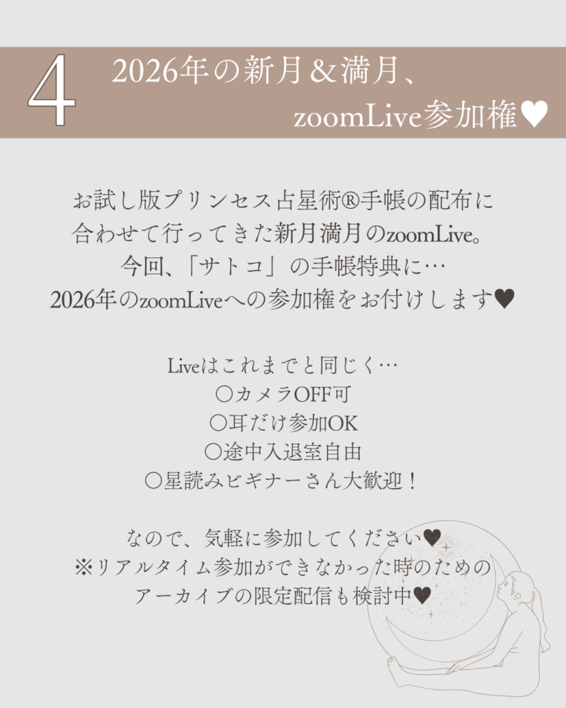 特典④:2026年の新月&満月zoomLiveの参加権♥