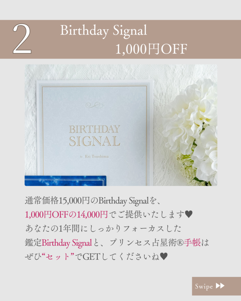 通常価格15,000円のBirthday Signalを、1,000円OFFの14,000円でご提供いたします。